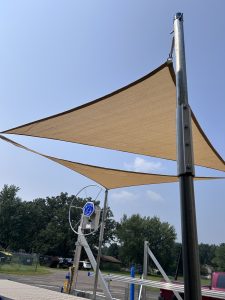 Shore end wheels consist of an axle and wheels welded onto brackets that bolt right into the holes in the Vibo truss style frame. Non-adjustable shore end wheels are $250.
